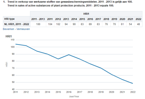 1. Aantal gewasbeschermingsmiddelen met 28% afgenomen