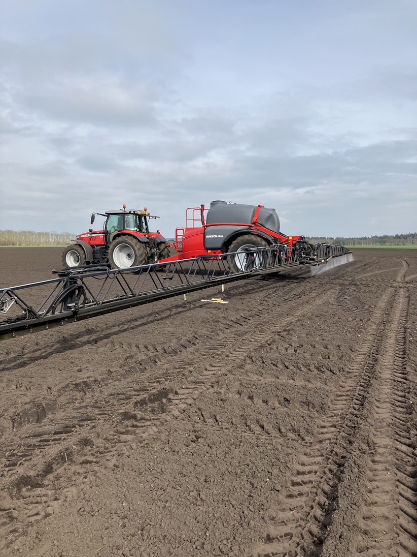 - Serenade 5 L/ha toevoegen aan de Rudis, volvelds toepassen en inwerken